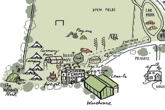 FY Camp is found in the little village of Wending, so as soon as you enter the village you’re not very far from the camp! Travel along the main road, a sat-nav will probably ask you to turn into Hulver Street but don't! The owners drive and track is off the main road, easily found opposite the bus stop just by Hulver Street, there is a large/lit sign welcoming you into the site. The owners are always at the end of their mobile phones too, to help anyone find the site! Once you’ve arrived, the car park is the first thing you come across, so the owners suggest that you park and walk to The Warehouse to check-in and then the owners will show you your surroundings and where to drive up to, in order to unload. Guests can drive around the field to drop off and access the spaces easily however the owners do ask for all cars to be returned to the car park after and then walk back to the campsite - 50m to the Warehouse, 75m to the tents and 85m to The Wren's Nest. Please never drive across the middle of the camp which is a play area and wild flower meadow.