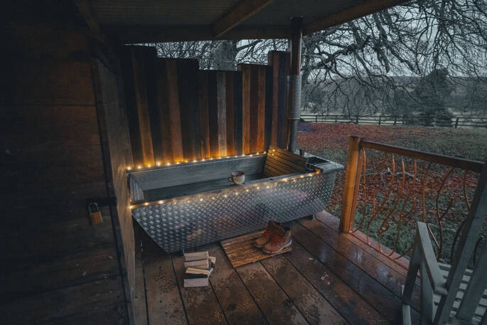 - Please bring torches, wellies, walking boots, waterproof clothing and flip flops that you can wear on your way to the wood-fired bath tub