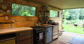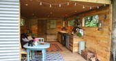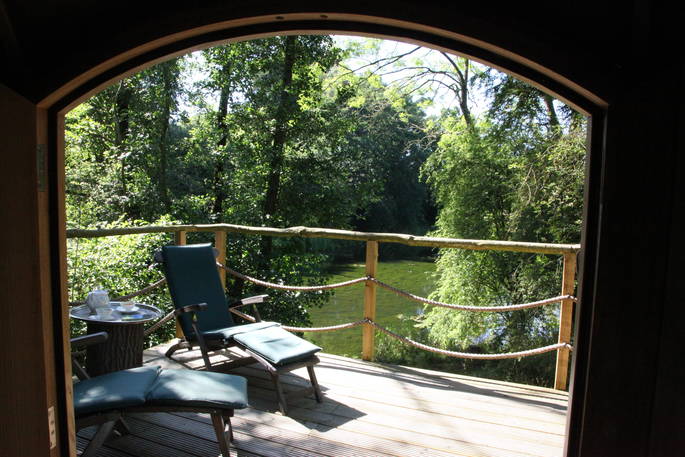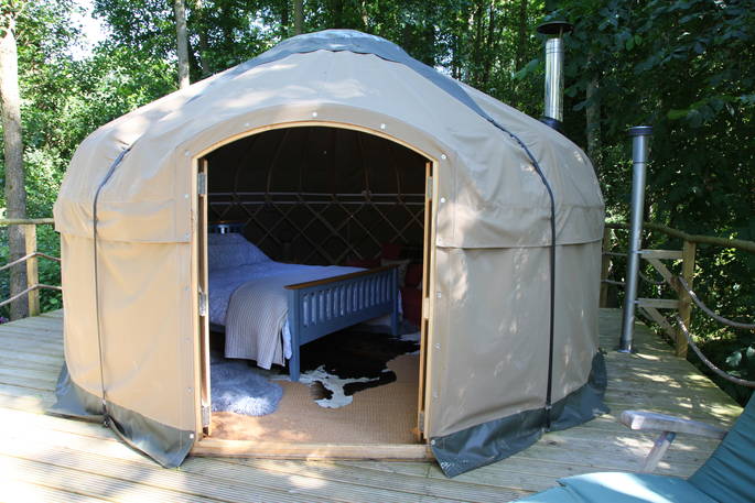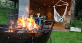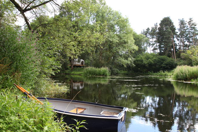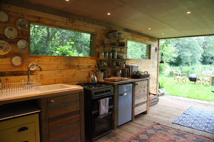 Start your day with a hot outdoor shower while you have a chat to the many ducks quacking past. This is a lovely, watery retreat and everything has been built as responsibly as possible. The cabin’s cladding is reclaimed pallet wood, the work tops are re-used oak from the owners’ farm and even the bedside tables in the yurt have been handmade by Ian. All the cooking gear you need is in the cabin kitchen and you’ll find half a dozen fresh eggs to get you started, but it’s a short walk to the communal shop for a veg box, homegrown Shetland lamb chops, sausages from their Mangalitza pigs, chutneys and jams. You can also buy more wood for the burner here or charcoal if you prefer to cook outdoors by the water on the Kadai, which doubles up as a barbecue and firepit. Memorable to watch the light on the water while you sip something cool and wait for your supper to sizzle to perfection. You can also step out onto the jetty and take to the lake on the paddleboards or in Tiddler, the little rowing boat, maybe even trying for a trout or two.