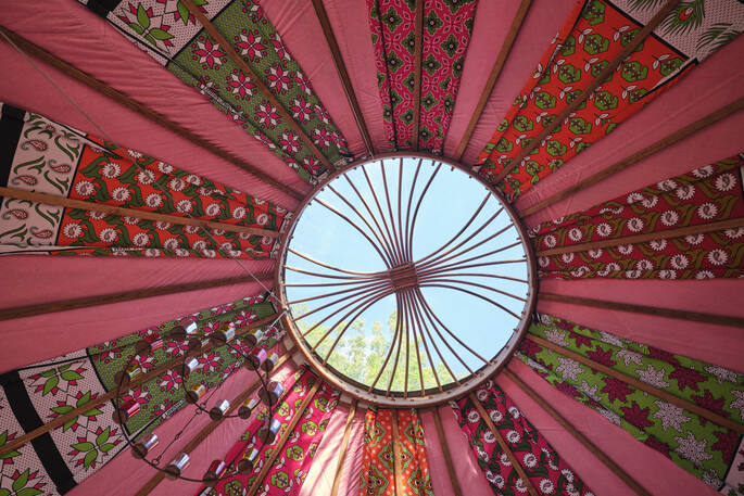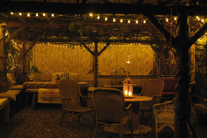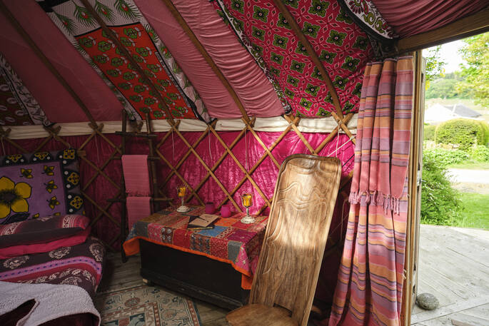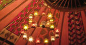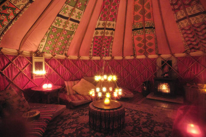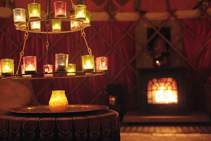 - Candles, lanterns and solar-powered fairy lights in the yurt
