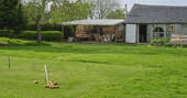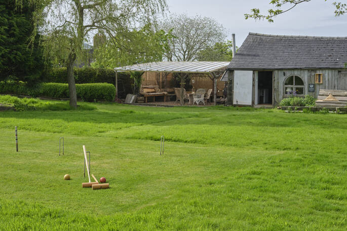 Set on a large wooden deck with outdoor seating space and a firebowl by the barn, the stage is ready to relax and spend time together. Your space has brightly coloured throws, and decorative fleeces – with a wood burner for warmth. To cook you have a kitchen in the small, converted barn and plenty of entertainment, including darts in the undercover seating area and a croquet lawn. If you wish to dine out then you can head to one of the nearest market towns, an easy drive away.