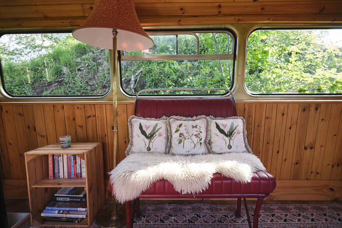 Old Number 1 was once one of five busses made specially for the narrow and twisty roads of The Isle of Man. After that, it became the tour bus for The Isle of Man stunt team, and was later found abandoned in a field – only to be restored and take on a new job as an artist’s liaison bus at festivals, hosting the likes of Blondie, Duffy, Ed Sheeran, and Little Mix to name a few. Now, in her retirement years, Old Number 1 is helping people find the peace and quiet she, and they deserve.