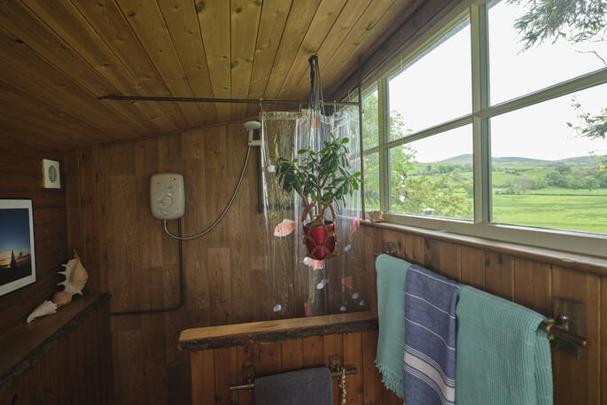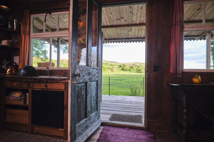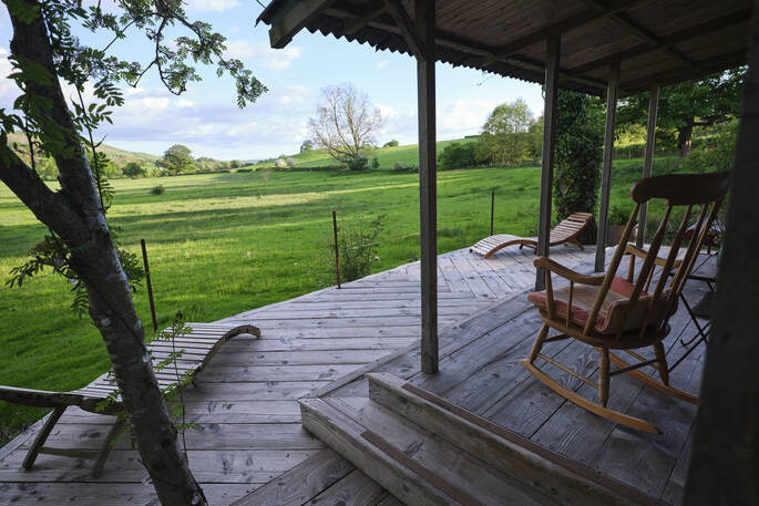 Peaceful, quiet and secluded, The Duck Hut has uninterrupted and unspoilt views over the rolling meadows leading up to the Shropshire Hills, and the nearest building to you is owner Frankie’s house, just behind you.