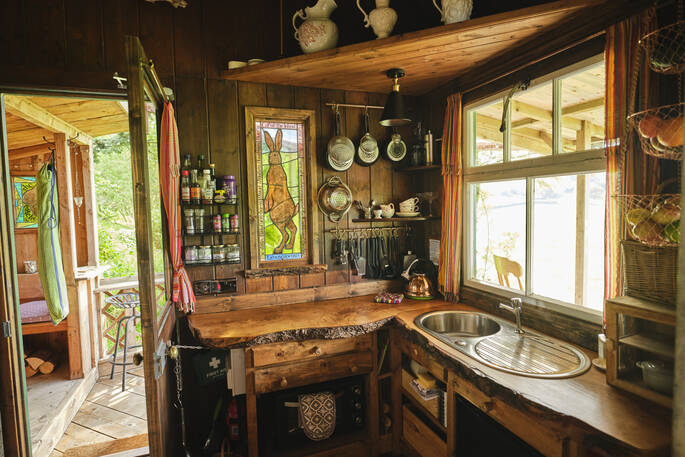 Walk through the fields and up into the hills from the doorstep, prepare food in the indoor kitchen or cook alfresco on the covered gas BBQ or over glowing coals in the fire pit. Sip a cold glass of wine whilst relaxing amongst the trees listening to the leaves rustling in the breeze, or spotting wildlife with the binoculars.