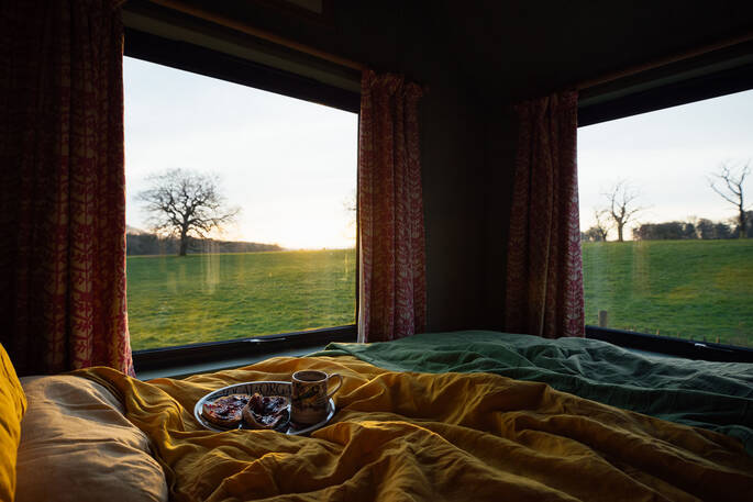 Relaxing at Clonnagapple is as easy as taking a perch, whether it’s the steps for sunrise, the hot tub that you slowly sink into while listening to wood pigeon calls or the seats round the firepit where you’ll sit mesmerised as sunset’s haze sets in. There’s the Clwydian Range, or the Peak district an hour’s drive away, and plenty of farm shops here and there, but if you work out how to stray from this beautiful site, you’ll have to let us know how you managed it.