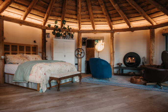 Guy and Samantha have been farming in the Brue Valley for 20 years. They have 2 Spanish Waterdogs, a small flock of Shetland sheep, a slightly larger flock of rare breed chickens and an abundance of wildlife in 60 acres of lush hay meadows. Guy is from Suffolk and Samantha is from Cheshire. They fell in love with the West country after 3 coincidental visits put their roots down to raise their 3 daughters around Bruton. It's a little oasis of natural beauty which deserved an amazing space and as soon as they learned about reciprocating roofs they were hooked. They get involved in all sorts of creative projects and rarely sit down. The farm is fondly nick-named 'The Quingdom' and they feel like the custodians for future generations gently nurturing the land to increase species numbers and diversity. The views can change kaleidoscopically with the changing weather, sunsets are spectacular year round and there is much peace to be enjoyed.
