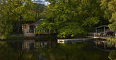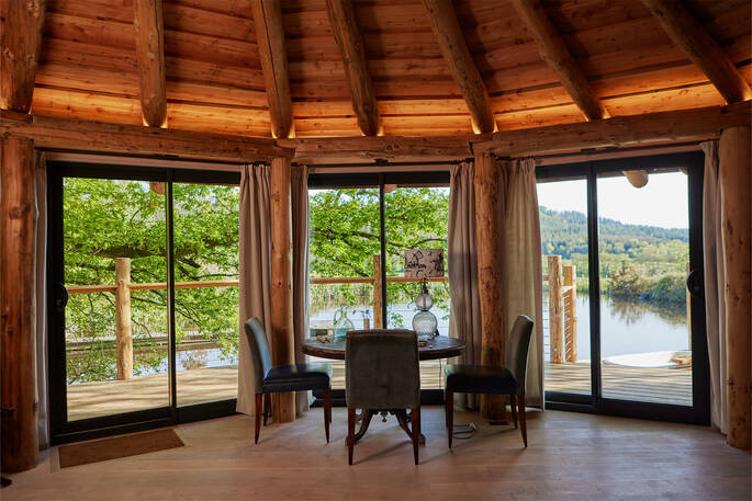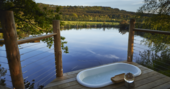 From the tip of its cool reciprocating roof to the bottom of the bathtub dropped into one of the two decks, this is an architectural wonder nestled into a wildlife oasis that will amaze and delight you even while it totally chills you out. On arrival you’ll meet the only other resident apart from the wildlife - Jeeves the luggage butler, who’s actually a converted mobility scooter and very handy if you’ve failed to pack light. Then it’s down to the cabin itself to discover the steam room, the outdoor fireplace and the spring-fed pond. From the kitchen deck a few yards from the cabin, the long jetty calls to you to take a running jump into the refreshing swimming water. The deck right outside is where you can bathe year-round in hot water thanks to the sunken tub. Stepping inside isn’t the end of the wonder, with a huge bed, modern kitchen and comfy lounge space generously styled. Even the blind over the skylight is cool and everywhere you go the sweep of windowed doors means you never leave the landscape behind.