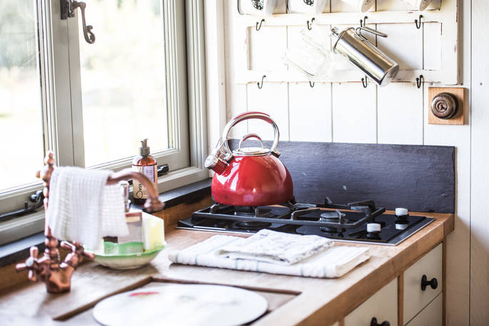Dimpsey is the sort of place that has been crafted so beautifully you notice the careful thought that’s gone into every delightful touch. Owners Emma and Andrew have blended their loves of luxury, vintage style and the great outdoors to create a space into which you can’t help but completely unwind. The hut itself is a treasure trove of surprises. There is a gas hob, a fridge and everything you need, plus the superb comfort of the bed, the old record player and even the styling of the light switches that add extra luxury and a little magic to your stay. The magic doesn’t stop at the door either. Outside you’ll find the long recliner hot tub in your own fairy-lit bothy. There’s a garden oven and deck chairs draped in soft sheepskins, so you can soak while dinner cooks then dine out under the stars.