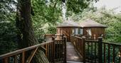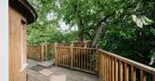 After you’ve made your way into the woods from the lovely house at Harptree Court, you climb up the steps, cross the walkway to the treehouse and leave the rest of the world behind you. The treehouse is a bright, open-plan space with a wood burner in the lounge/kitchen area and the bedroom just beyond. Everything from the induction hobs to the bed linen on the massive double bed is of the highest quality and if you don’t fancy soaking in the deep copper bath, then there’s a shower and loo in a small room just off the kitchen. There are chairs out on the balcony too, so you can lounge in the trees and listen out for the wildlife that thrives in the wooded grounds.