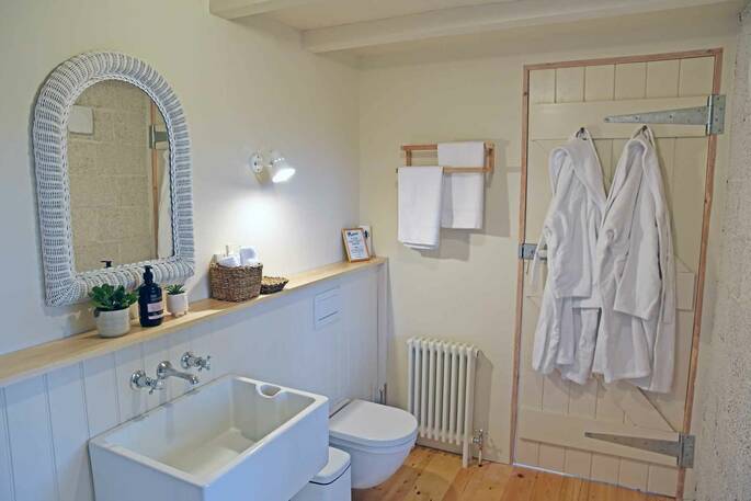 There are long walks in all directions, National Trust spaces nearby, National landscapes in easy reach and around an hour’s drive to either coast. When all’s said and done, you could hardly be judged for just wandering around barefoot and enjoying the grass, sipping cups of tea on the porch, or taking long afternoon baths with the bifold doors open to the sound of birdsong.