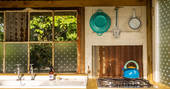 Owners Jo and Roe have drawn on Jo’s art and a shared passion for sustainability. A biomass boiler provides heat for the farm and solar panels provide power for both the farm and the tipi. The site has a wealth of colour and character from the hazel and blackthorn bed to the locally made crockery in the upcycled outdoor kitchen. Even the superb health of the surrounding woodland and farmland is down to their careful stewardship which increases your chances of observing a wide range of wildlife including deer, barn owls and badgers, right from the door of your tipi. Should you feel the strange desire to leave your little woodland glade, then a four-mile hike brings you into Bruton, where you’ll find Matt’s Kitchen, that Jo and Roe recommend for its zero waste policy, great value and fabulous atmosphere. It’s also where you can pick up supplies from the local farm shop, although the welcome pack will give you a good start and let’s face it, when you’re faced with the choice of a four-mile hike or soaking in a hot tub in the woods, what are you really going to choose?
