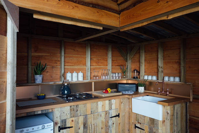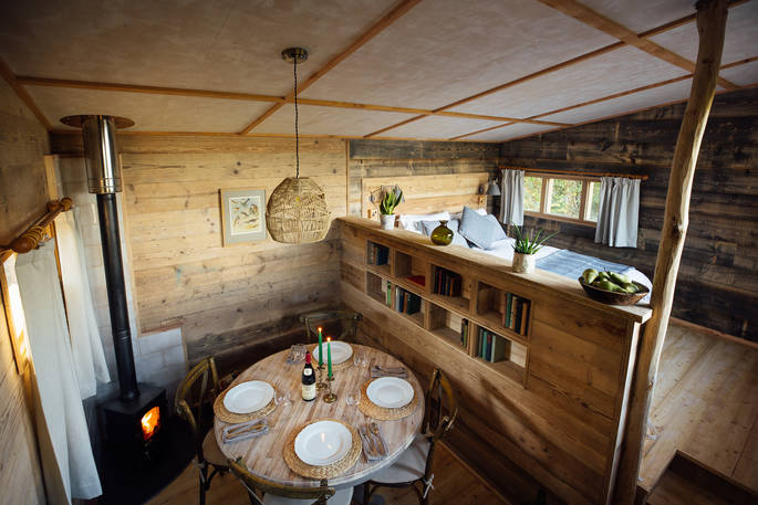 The Pennard Hide is off-grid with solar power lighting and wood-fired heating.