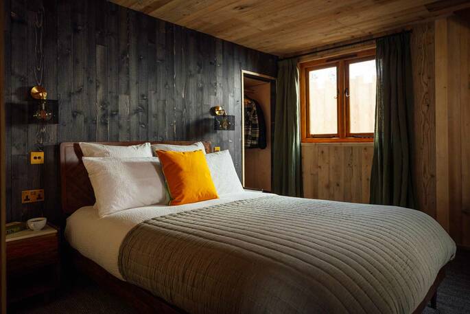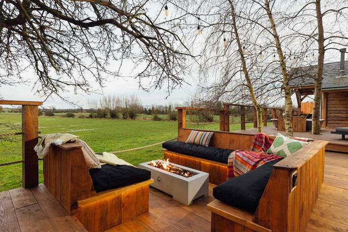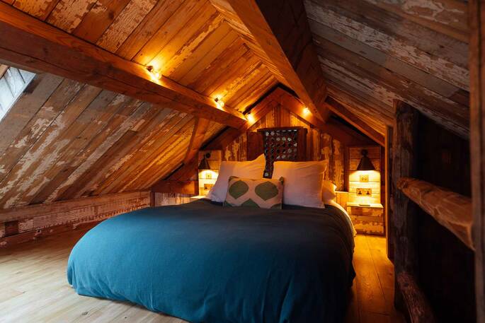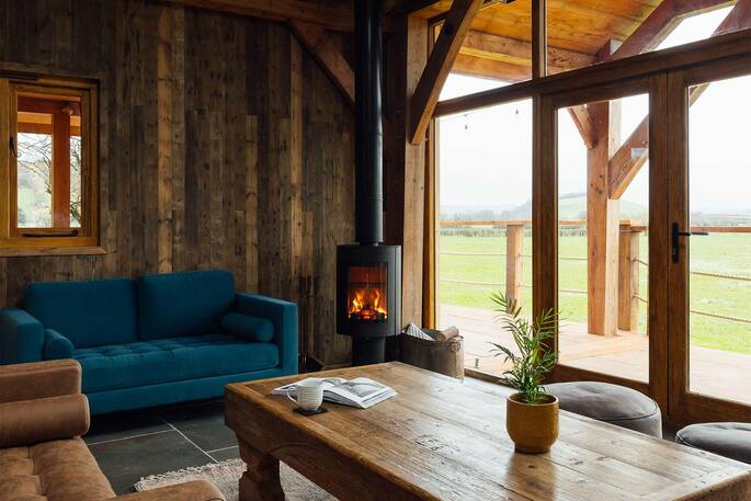Camelot is big. It’s the sort of place that you spend an hour running around exploring when you arrive. Two full-size bedrooms, one with an en suite, plus one in a loft space, are all waiting around the living area to be rushed to and claimed. You might eventually come to rest in the hangout area, lighting the wood burner and setting the table outside as someone else fires up the pizza oven.