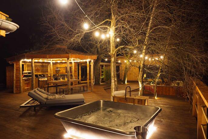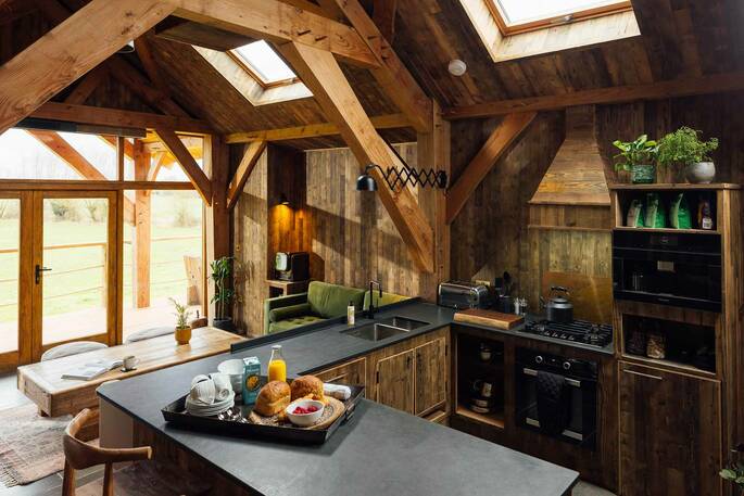 I booked a surprise for my hubby's 60th.with our 2 grown up sons.when we 1st walked in thru the vintage old doors what a wonderful surprise of the outdoor space and views-we were blown away. The space was fully used from the moment we woke up with our coffee's in the jacuzzi room and some Yoga to cold dipping from the sauna to the copper bath.what a great usable space even when it rained though the weather for us was warm & sunny which was a bonus as it felt like we were abroad somewhere special. We took loads of special food-we cooked pizza in the gozney & steak & a bbq on the incredible weber gril .what a wonderful few days!!