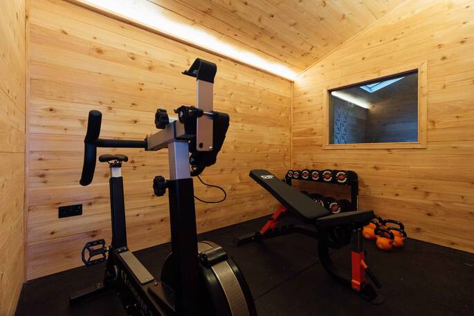 - Indoor gym with Mirafit dumbbells and Kettle bells, plus Concept 2 Bike Erg