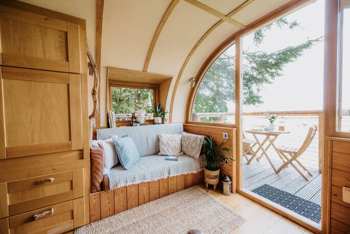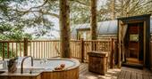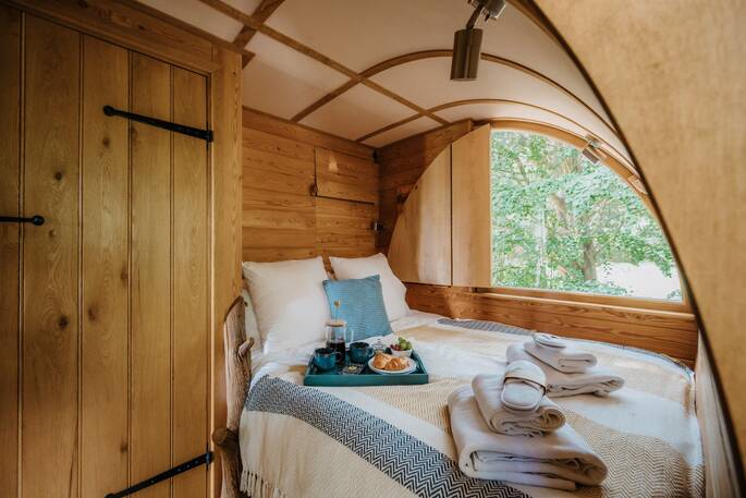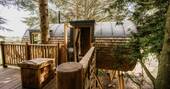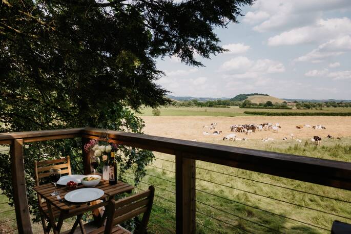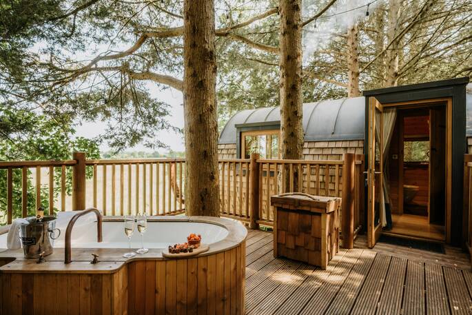 In the treehouse you’ll find everything you need if you do fancy a quiet evening in. Throw the doors open if the weather’s good, light the wood burner if it's chilly, then either fire up the Weber BBQ, the pizza oven, the tandoor, or cook in the indoor combi oven, before a post-prandial coffee from the Nespresso machine. As well as the bath out on the deck, there’s a flushing loo and a drench shower in the bathroom, although you’d be mad not to have at least one amazing soak outdoors. The whole space has been beautifully crafted to immerse you in the quiet of the country. You’ll hear the birds in the morning, maybe owls hunting at dawn and dusk, and possibly catch sight of deer foraging in the woods around you. With the Mendips on your doorstep and the vineyard just next door, it’s the perfect place for a few days of hearty hiking, lazy bathing and everything in between.