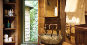 When you arrive, you’ll pick up lanterns and a map at the welcome booth and make your way through the woodlands and over the stream to your private patch of wilderness. The treehouse is made up of two hexagons, which are joined in the middle by a beautiful copper and brass kitchen. On one side, there's a cosy living room with a log burning stove and on the other is the bedroom and a luxury underfloor-heated bathroom. Another element of relaxation at The Bower Treehouse is the subtle sound of the small stream below the treehouse, meaning you can snuggle down to read with the sound of flowing water in the background. You'd be hard pushed to find a better location for it all either, with Hauser & Wirth Art Gallery, Stourhead House, Frome Independent Market and Glastonbury Abbey all on your hand-crafted doorstep. If you can get out of the bath for five minutes.