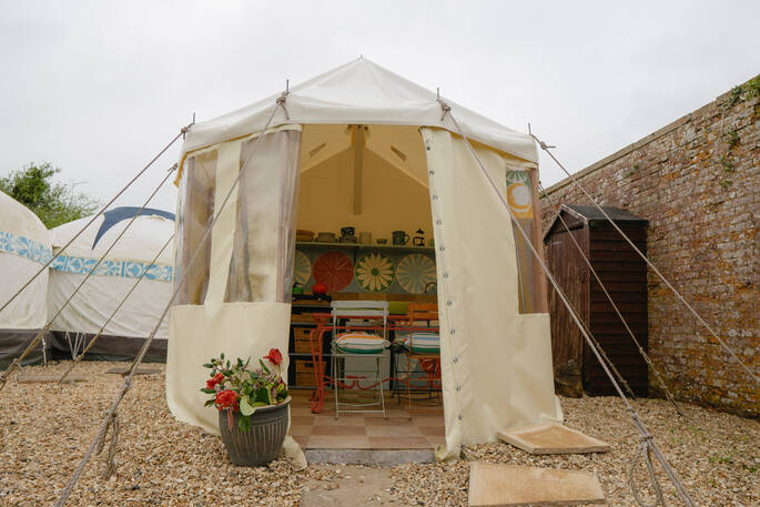 Despite the canvas exterior, you have mains electricity, hot running water and even a wood burner for cooler nights – but warmer ones are where it gets exciting. The outdoor pool’s open by request – and wandering back to your space, with hair still damp, you can wander the walled gardens, or play lawn games on the grass. With farm shops at every turn nearby, and pubs stocked with fresh local cider, this is the perfect place to enjoy Somerset.