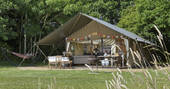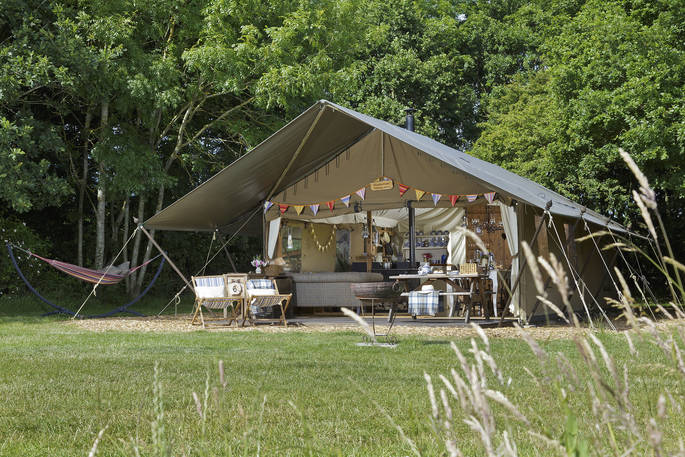 A few days spent here make for some easy relaxation – relax in your spacious tent, with a large cooking, dining and sitting area, a bedroom complete with four-poster bed, and the quirky cupboard bed for the kids. There is plenty to explore in the local area, and on site you can spend time meeting animals, building dens, exploring the labyrinth or even just whittling away the hours… whittling. An onsite pantry shop is stocked by the local farm shop with lots of tempting treats and some of the best locally sourced produce.