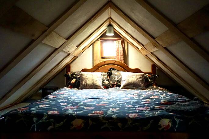 - One double bed accessed via ladder on mezzanine level and a small double sofa bed.