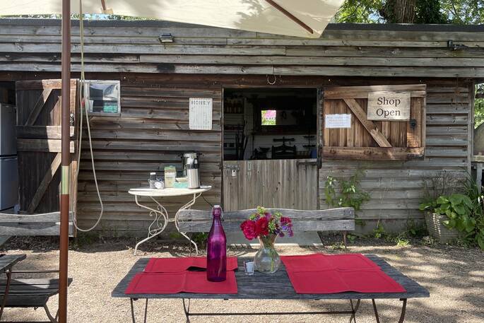 When it's open, have a browse of Forest Garden's little shop, which sells a miscellany of interesting things collected by Lisa and Charles, as well as some of Forest Garden's own produce.