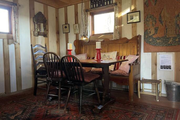 - The main source of heat comes from the wood burner