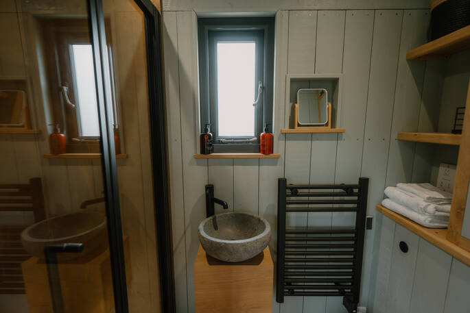 - There is a small shower room in the hut with a 5cm threshold