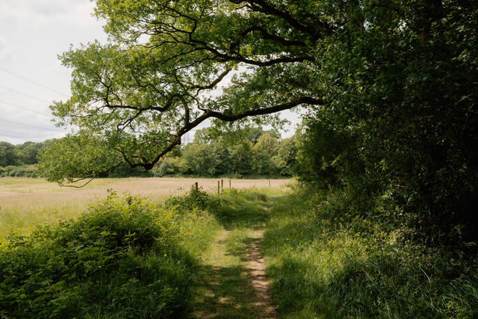 Walk through to Knepp re-wilding estate. Offering 16 miles of walks at Knepp within the rewilding project, with five tree viewing-platforms, close to public footpaths, offering panoramas of the surrounding countryside, and a bird-hide overlooking Knepp Lake.
