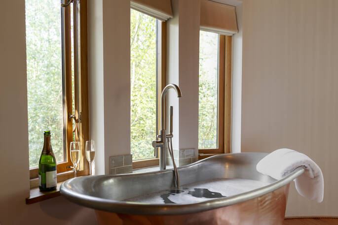 The Buzzardry sits in the High Weald AONB, and days out are in abundance. There are over 30 small manor houses, castles, steam railways, sandstone climbing crags. The coast is just 30 minutes away and the famous Bewl Water reservoir a similar distance. Pit stops and fine dining are at every turn, with The Horse and Groom ten minutes’ walk away, or The Star Inn a ten-minute drive. You could even take a slightly longer drive to one of Kent and Sussex’s many local vineyards that offer fine dining as well as wine-tasting. Chances are, you’ll make these plans, but if you escape the pull of a glass of wine by the wood burner, or a book in the copper bathtub at the foot of the bed – we’ll be surprised. Whether you’re looking to find some peace and quiet, or a magical place to return to after a day’s adventure – you’ve found it.