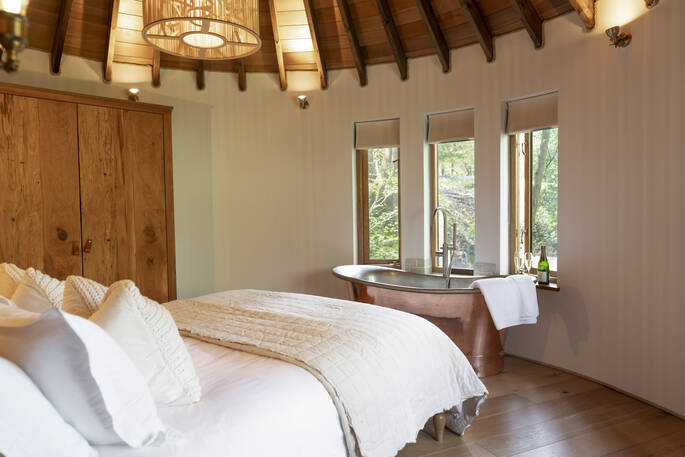 Fabulous treehouse in beautiful surroundings. So much to love, peaceful and relaxing. This was our second visit as we loved it so much last year. We brought our granddaughter again (10 years old) as she loves nature and all the woodland and ponds.