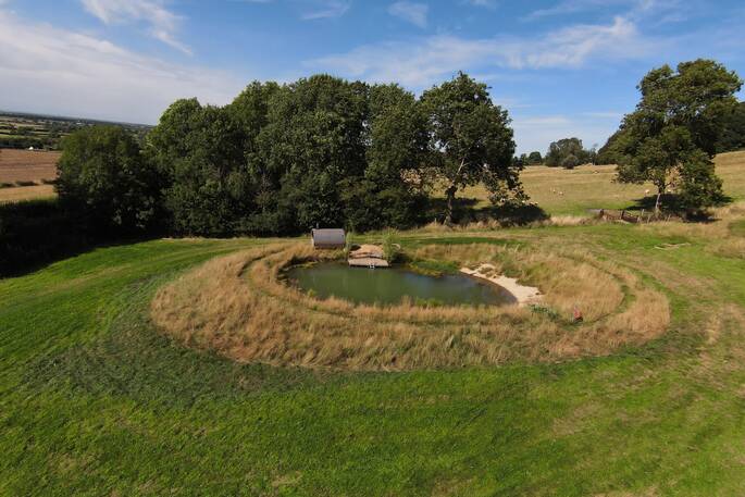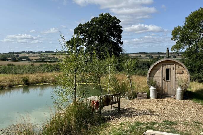 Visit the on-site wild swimming pond and wood-fired sauna which is included in your stay.