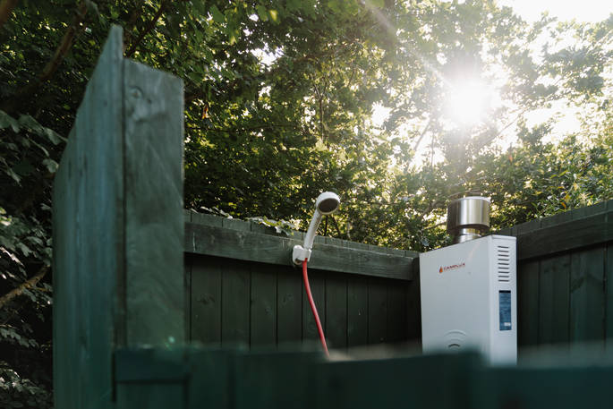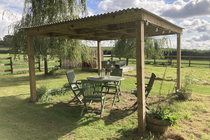 - Gas heated outdoor shower and changing shed, set in a small copse beside the shepherds hut