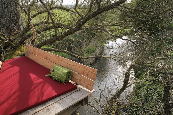 There’s also a rather unique space – at the site of a fallen tree that straddles the River Avon, there’s a platform built on the recumbent trunk. In summer it’s shrouded in leaves, as the tree still lives and flowers – which could provide some rather magical outdoor naps and stargazing during the summer months.