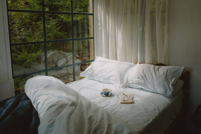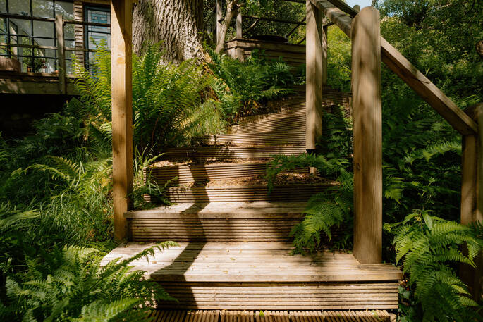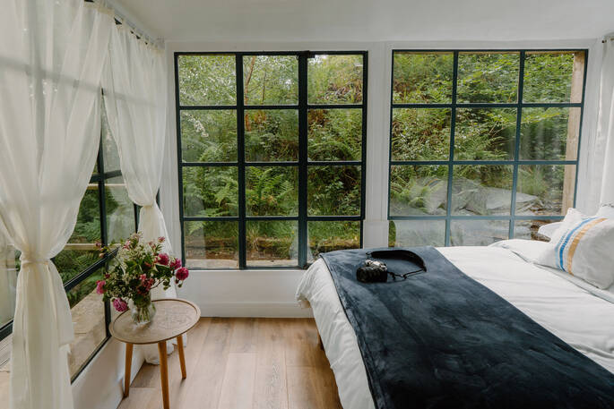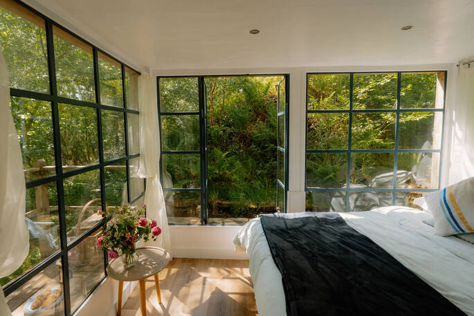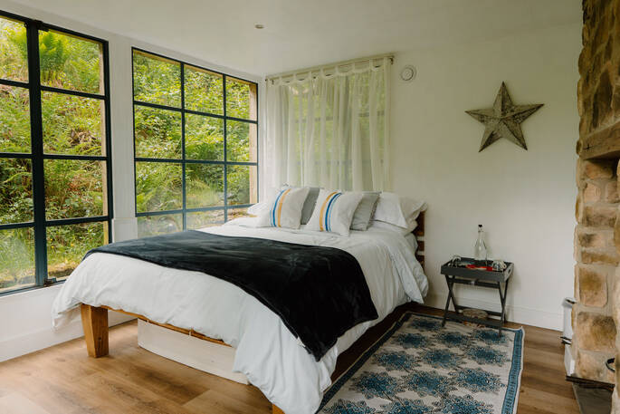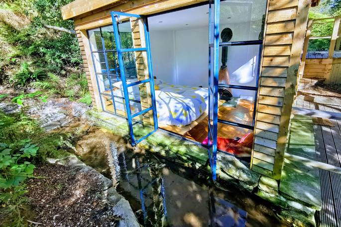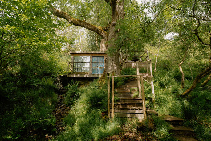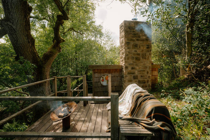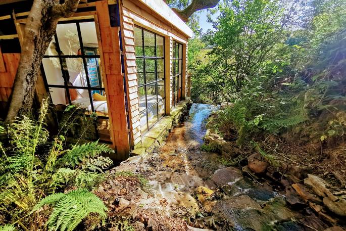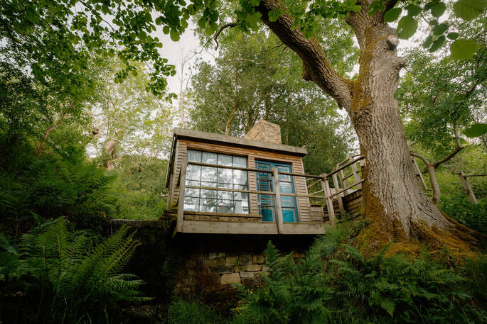 Owners Richard and Barbara styled Falling Water on the Frank Lloyd Wright building of the same name, looking to create something that embraced and blended with its surroundings. They, as well as the building itself, invite you to settle into Yorkshire’s scenery and history. The cabin is just off the Pennine Way and you can walk a quick section or make big hikes south to the canal town of Hebden Bridge or north to East Marton. You’re also surrounded by cultural landmarks, from Saltaire’s gallery celebrating its most famous son David Hockney, to the actual steam train featured in The Railway Children, which still runs on most days and Wuthering Heights’ Gimmerton Chapel. If you’re not staying out for dinner, then sitting quietly out on the cabin’s deck at dusk might be the best thing you do during your stay. Deer sometimes come to drink from the stream, owls hunt in the woodland and the whole area rustles with wildlife as the water flows past.