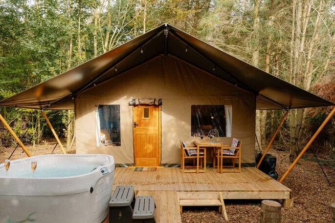 Just had a fantastic 2 nights at the Deanwood Safari tent with my boyfriend for his birthday. The owners were very welcoming and provided all the amenities that you need. Such a tranquil space with your own hot tub and fire pit/BBQ, all wood and logs are provided. Bed was very comfy, large space inside, the indoor log burner was lovely for the night when we had lots of rain. Plenty of wildlife roaming about on the farm, chickens/rabbits/birds and there's even fresh eggs for you to purchase on site. There's a swimming pool/sauna on site which we didn't try but looked lovely and also a games room for a bit of fun. Would 100% recommend and will be back.