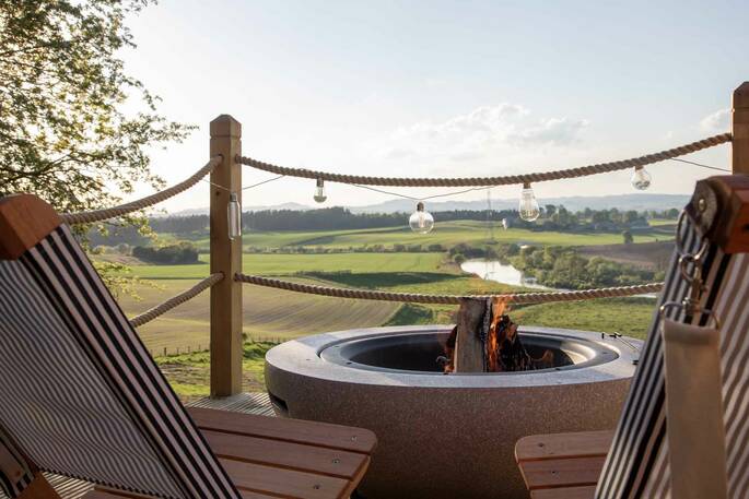 Returning to the family farm after 10 years in Australia, Wheeze and Hendy were looking for opportunities to diversify the farm (still actively farmed by the family for over 300 years) and realised they had a perfect secluded location for a couple of cabins enjoying uninterrupted views of the River Isla and beyond to the highlands of Perthshire. They were also excited to bring a taste of the amazing spaces they had been lucky enough to stay in down under back to Perthshire.