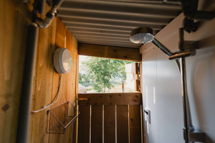 - Solar lighting in the bathroom and compost toilet