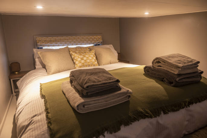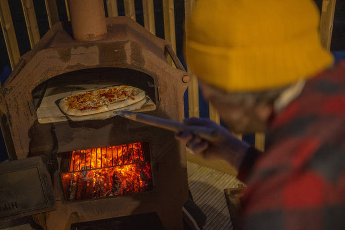 A good ten-minute walk from anyone or anything except your nearby parking spot, is this cosy cabin built from an old bale trailer down by the lochan (what you call a little loch). You’ll feel yourself dissolving into the peace of the place, with nothing to hear but birdsong and the gentle rustle and clack of the field of red deer just up the hill. There’s a woodburner and comfy corner sofa indoors, with a similar setup outside so you can lounge in comfort whatever the weather. You’ll find the oven with pizza shelf out on the deck, perfect for long summer evenings, and the outdoor bath, which is a sensational experience in all seasons. There’s a more conventional bathroom and kitchen in the cabin, along with the king-size bed on the mezzanine, but the beauty of being here is living outdoors as much as possible, so you might end up using nothing more than the kettle.
