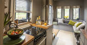 - Kitchen equipped with a gas hob, oven, kettle and an undercounter fridge/freezer
