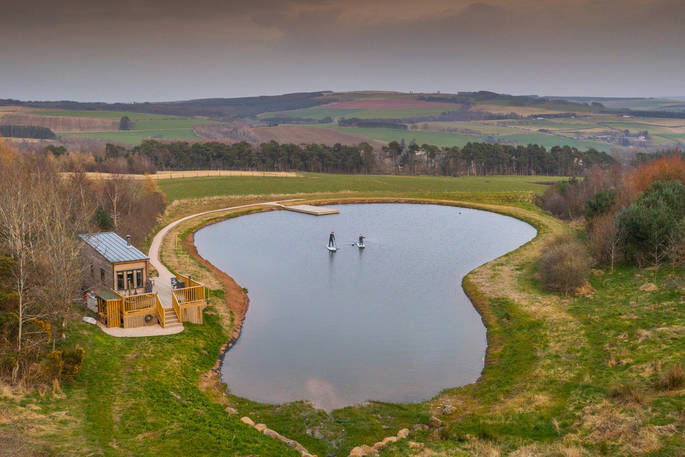 Having made the pond in January 2018, the family realised they had a dream location. With stunning views across the Rule Valley to the south and to the north, you look back up to the hill of Ruberslaw where it towers majestically above you. Claire and Sarah are delighted to have the opportunity to run the small but beautifully formed Tiny Home Borders, which shares this magnificent hillside location with the red deer.