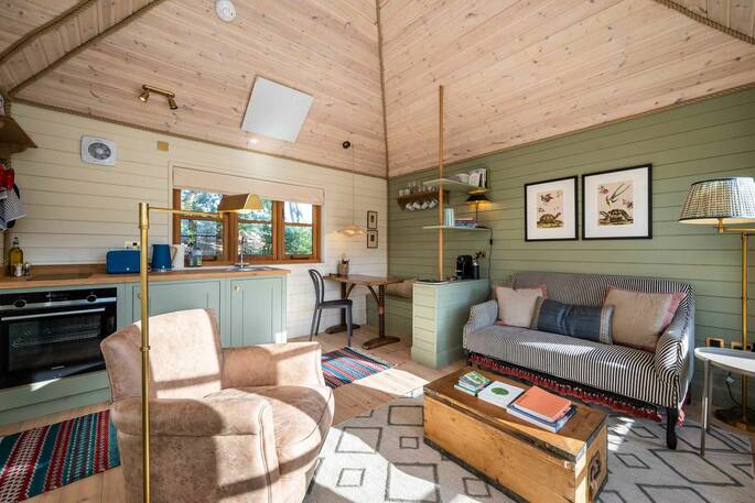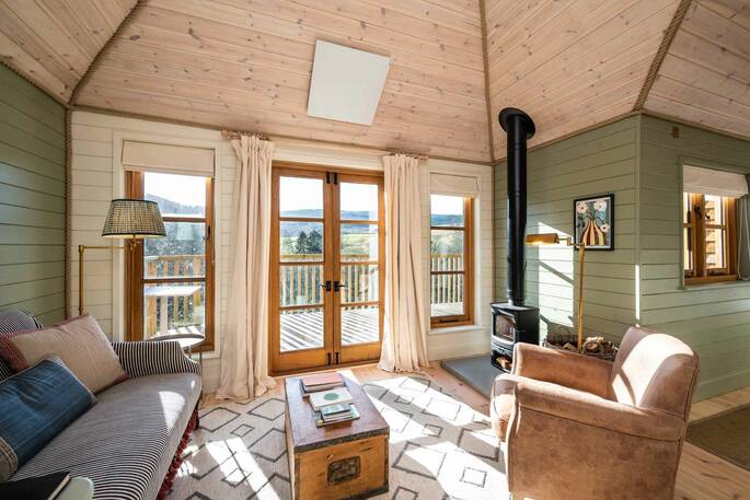 We had a wonderful stay, lovely treehouse sited in the most tranquil setting - with views to die for. The outside bath was a serious treat ! Everything has been done to the highest spec, with the most comfy super King size bed. There are lots of interesting books and information on the local area. The location of the cabin is great - in the middle of a beautiful estate alongside the River Tweed with many interesting places to visit - Melrose , St Boswells , Kelso etc etc - that is if you can tear yourself away from the cabin ! Lovely hosts / this is well worth a visit and we plan to return.