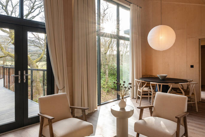 Take a look at Wren and her sister treehouse, and at face value, you see a stunning example of a space designed to let you relax and unwind in nature. What’s harder to see is the work done to enhance the biodiversity and sequester carbon from the atmosphere. Its eco-credentials are stunning, but no more so than the Scandi natural colour palette, sparkling luxury interiors and airy living spaces.