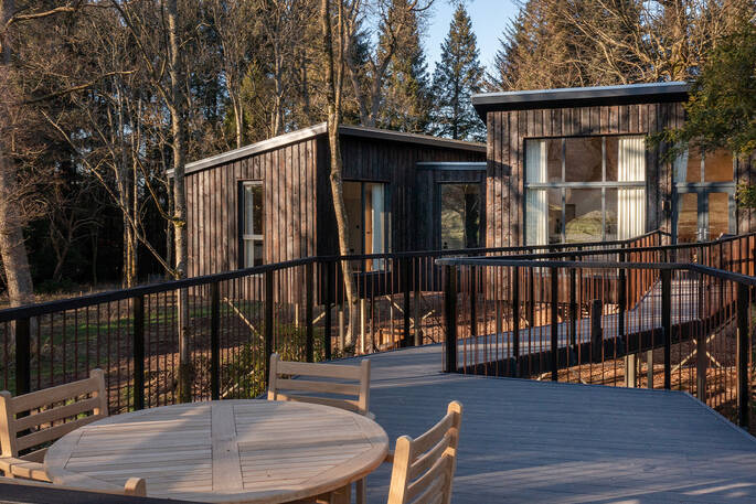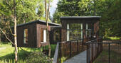 They were built largely using timber sourced on the estate, keeping the carbon footprint low. Airtight construction, heat pumps and wood burning stoves keep the output to a minimum.