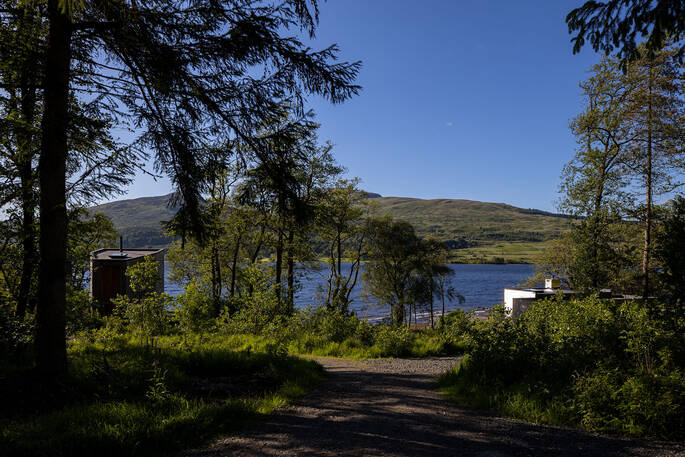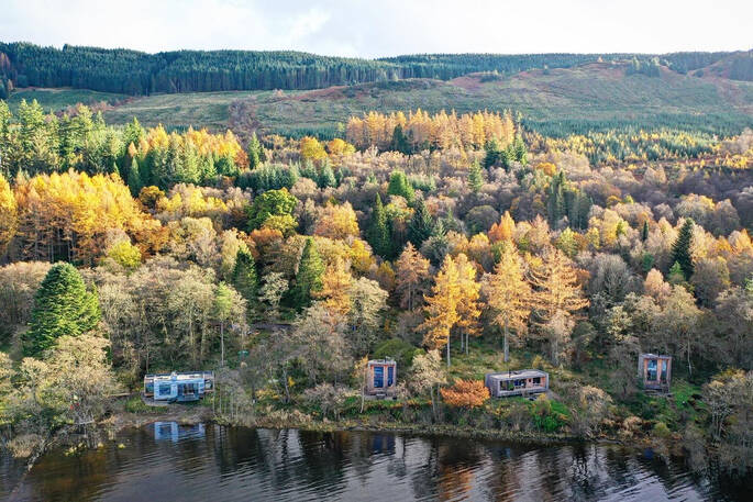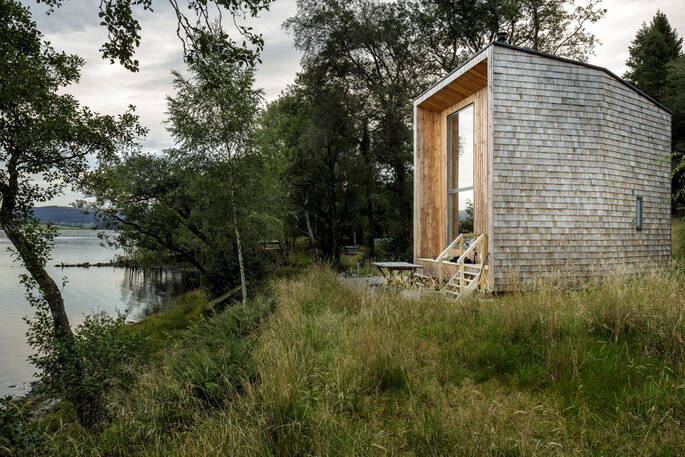 The cabins sit in the Loch Lomand and Trossachs National park and back on to part of the route 7 cycle network.