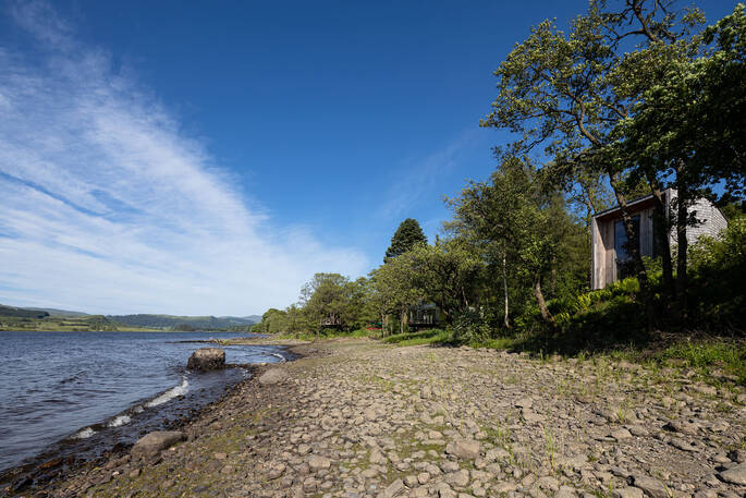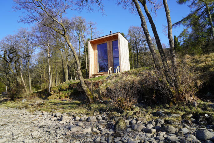 The cabins were finished in October 2019. It was the end of a long road, Jemima and Hugh moved up to Scotland in 2015 and had been trying to get the funds together and planning permission since then. The cabins sit on about 2 acres of land that belonged to Hugh's parents until they sold the next door farmhouse and left the land to Hugh 10/12 years ago. Hugh has been slowly clearing it and managing the woodland since then with a view to one day building something. Hugh is completely in love with the place and grew up stomping around the loch and playing in the burns that border the land so to be able to create these cabins for guests to enjoy is very special for him.