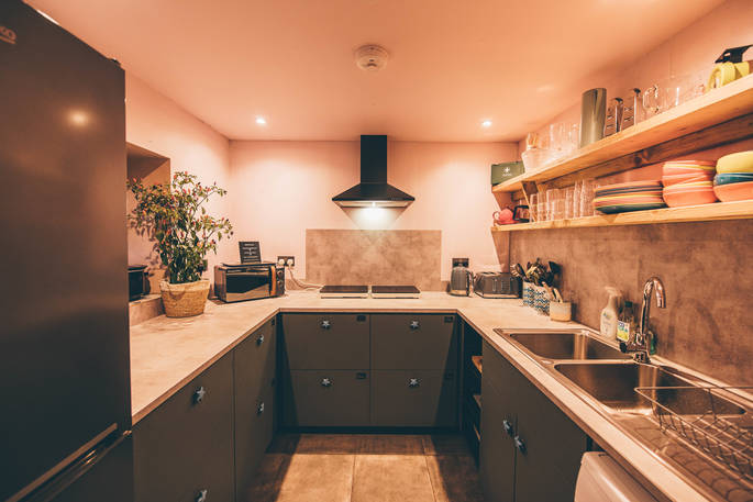 - There's a kitchen in the glamping barn with induction hobs, microwave, slow cookers, toaster, kettle, fridge freezer, dishwasher etc