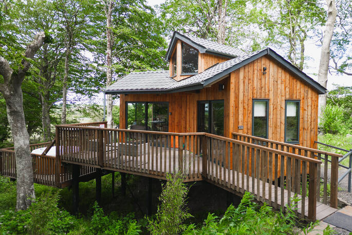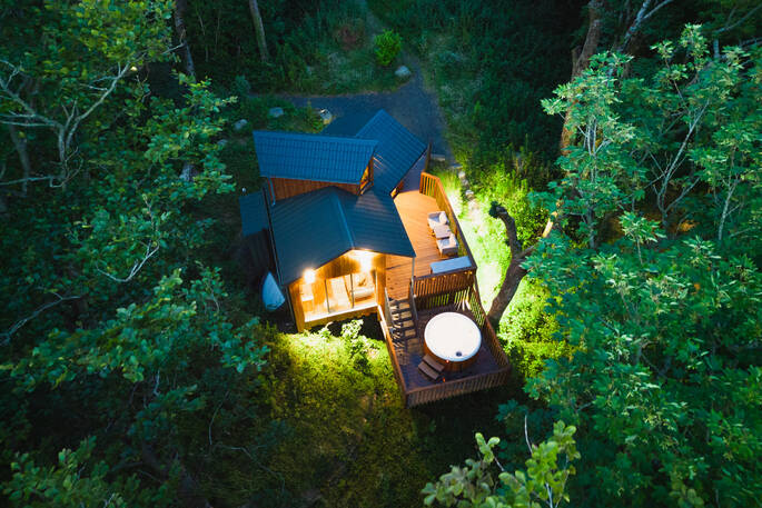 Alun and Lowri are a young couple who have lived on Alun's family farm since 2016. The farm has been in his family for over 60 years, starting from his grandparents. They decided in 2016 to convert 2 old barns into 2-holiday cottages. Alun was a builder by trade and built them himself. Soon as they finished building them they went straight onto the treehouse project which is something they've discussed for years. Alun and Lowri really enjoy the outdoor experience so they thought that their woodland would be the perfect spot for a treehouse retreat.