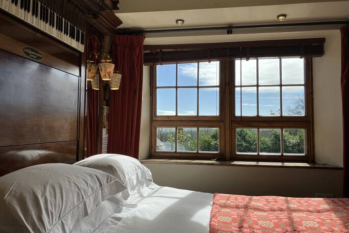 With coastal paths and beaches in easy reach, not to mention a gin distillery and cheese producer down the road, you can keep yourselves entertained for days by exploring – but bedtimes will never fail to amuse when you’re sleeping in a bed framed with pianos.