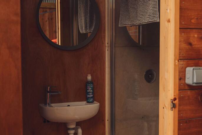 - Private hot shower and flushing toilet in the communal area - a 1 minute walk from the cabin