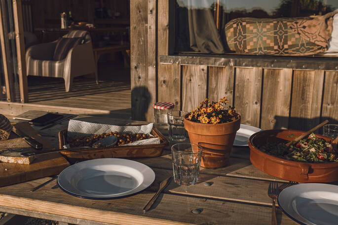 Tea, oil, salt and pepper are provided. Pick fresh herbs from the pots outside the Pig Shed.